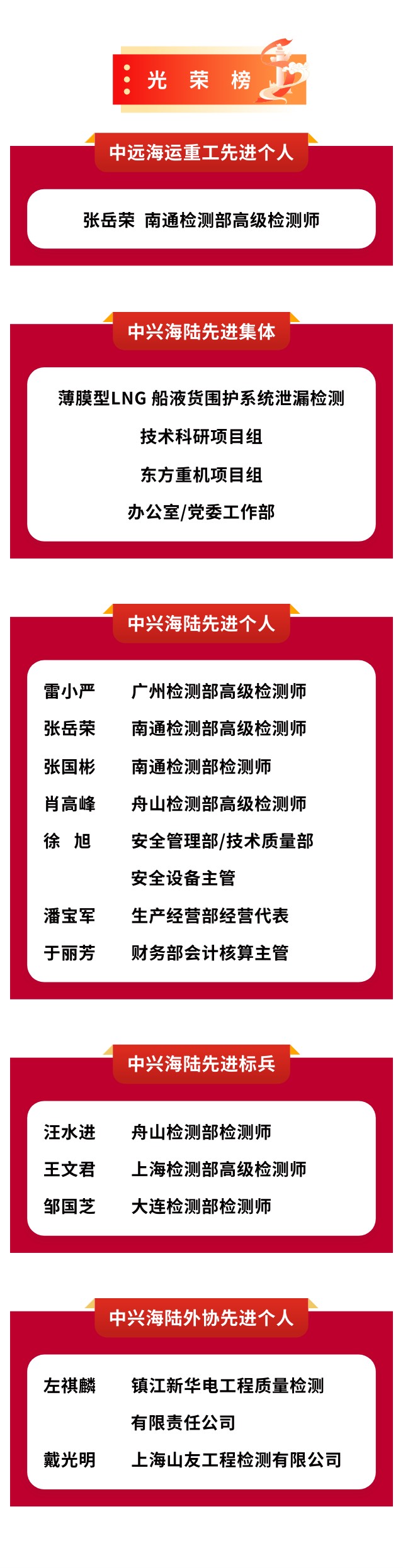 光荣榜 | 中兴海陆2024年度先进典型